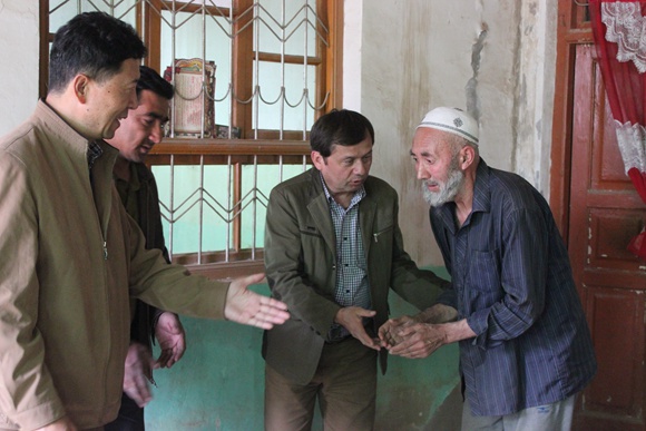 慰问“四老人员”和特困家庭,把党的关怀送到村民的心窝里。住其木盖尔里克(20)村工作组组长一行趁着工作间隙慰问村里的重病家庭和四老人员。组长阿布都热西提•努尔登每到一家,都亲切慰问村民,宣传党的政策,告诉村民党和政府不会忘记大家。