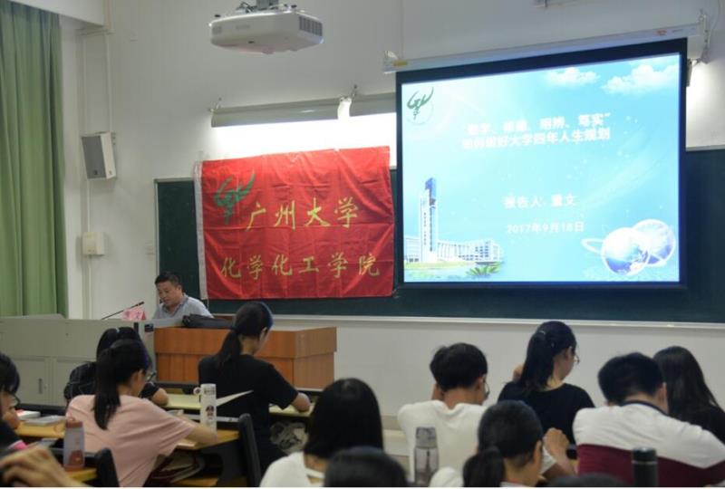 学科建设优势,回答了要建设什么样的高水平大学、培养什么样大学生的问题。在此基础上,他要求同学们做好大学阶段的人生规划,鼓励同学们在完成课堂学习任务的同时,积极参加挑战杯、大学生科技创新大赛、化学技能大赛等学术科技竞赛,不仅要学会在比赛中收获知识,更重要的是学会“何为团队、如何成功”的道理。董院长告诫同学们,在大学生活中要学会明辨是非,勤学笃实,学会取舍,发扬以“爱国、进步、民主、科学”为核心内容的五四精神,自觉培养和践行社会主义核心价值观,做一名与高水平大学相符合的合格大学生。