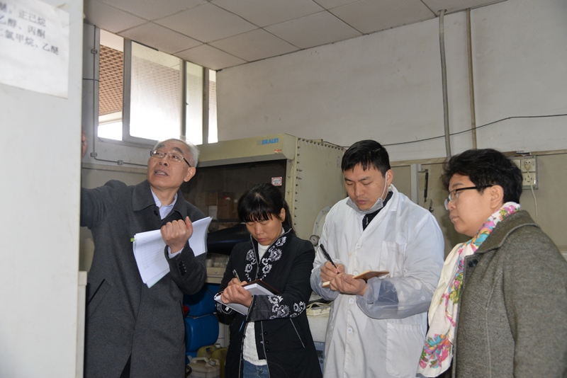 的教学和科研实验室进行了实地的检查。检查组针对实验室安全责任体系、规章制度、安全设施、基础安全、危险品管理等八大方面进行了耐心细致的检查。在实验室现场检查中,发现部分实验室还存在危险化学品分类存放不规范、应急喷淋设施老化、大型危险性设施缺少安全操作规程和指引等安全隐患。