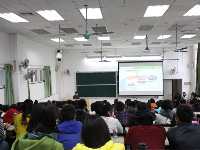 第三届学生会主席,现任广州恒广复合材料有限公司总经理。他首先分享了他的创业故事,然后向师弟师妹提出了宝贵的建议:第一,刚出来工作先不要考虑工资问题,先要提升自身价值,工资是会随着自身价值而增长的;第二,职业生涯选择很重要,建议同学们主动了解合适的自己的企业;第三,建议大家先就业再创业,建立自己的团队和人脉后再找机会创业。李茂锐朴实、幽默的语言赢得了同学们的阵阵掌声。交流会气氛轻松,座无虚席,有些同学站着同样听得津津有味。