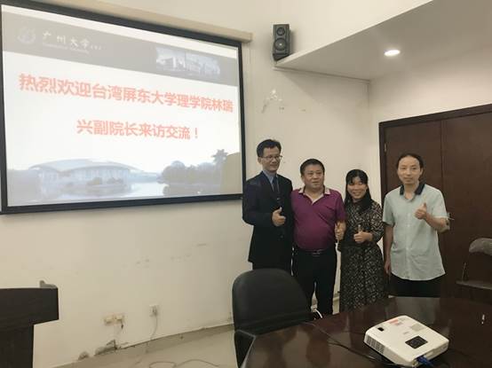 2018年8月29日下午,台湾屏东大学理快猫app 林瑞兴副院长来快猫app 访问,快猫app 董文院长,邹汉波、蔡卫权副院长接待了来访客人。