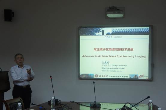 刘虎威教授的报告主题为“常压离子化质谱成像技术进展”,他以幽默风趣的方式给大家介绍了离子化质谱成像(MSI)技术和等离子辅助激光解吸电离质谱成像(PALDI MSI)技术,另外,还介绍了成像质谱显微镜的应用初探,用于鉴别咖啡豆、三七、种胚,以及脂质组学(鼠肾、鼠肝、人类胃癌和人类肝组织)等。