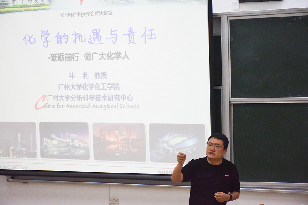 本次讲座以丰富而新颖的内容、严谨而风趣的语言为两大亮点,为一场生动的专业教育、人生教育。牛利教授从化学的重要性谈起,结合自身带领团队开展科学研究、参与实际项目的经历,逐步深入到化学的学科领域,让同学们领略到化学、分析化学在国家发展中发挥的重要作用,更体会到它们在日常生活中无处不在的实用性,内容涵盖生产生活的众多领域,揭示化学产生作用的处处细节,由现象到本质,形式新颖,逐步凸显出化学发展的机遇与我们肩上的责任,让同学们深受鼓舞;作为化学领域专家,牛利教授以通俗而风趣的语言,将化学的学科介绍、知识应用等专业内容以大众化的方式呈现,让同学们“听得懂、听得乐”,对化学更多几分了解和热爱。在谈到分析化学的作用时,牛利教授笑称“分析化学是万金油”,巧妙点出分析化学的广泛应用,令人印象深刻。