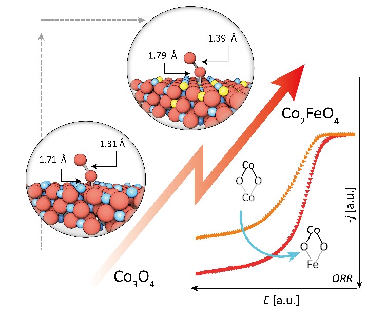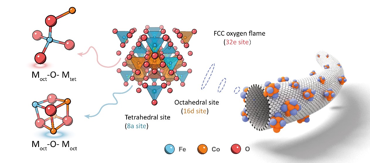 清洁能源材料所刘兆清教授研究团队和澳大利亚纽卡斯尔大学马天翼博士合作将杂化尖晶石Co2FeO4/(Co0.72Fe0.28)Td(Co1.28Fe0.72)OctO4纳米颗粒生长在N掺杂碳纳米管(NCNT)上,将其作为双功能电极应用到锌空电池上,展现了高功率密度 (90.68 mW cm-2) 以及在大电流 (50 mA cm-2) 下较强的耐用性。研究成果提出将Fe引入到Co3O4晶格用以激活八面体Co的氧催化活性的思路,研究了本征活性的增强与电子结构的关系,发现在双重效应的作用下,Fe掺杂的CO3O4耦合的碳纳米管材料显示出接近贵金属的氧催化活性,实验和理论计算均证明,Co2FeO4催化性能的增强与八面体Co性质的改变有关。该研究成果发表在化学类顶级期刊《德国应用化学》 (IF = 12.257) 上, 并被遴选为Angew. Chem. Int. Ed. 的VIP论文 (Very Important Paper) 和封面论文 (Inside Back Cover),快猫app