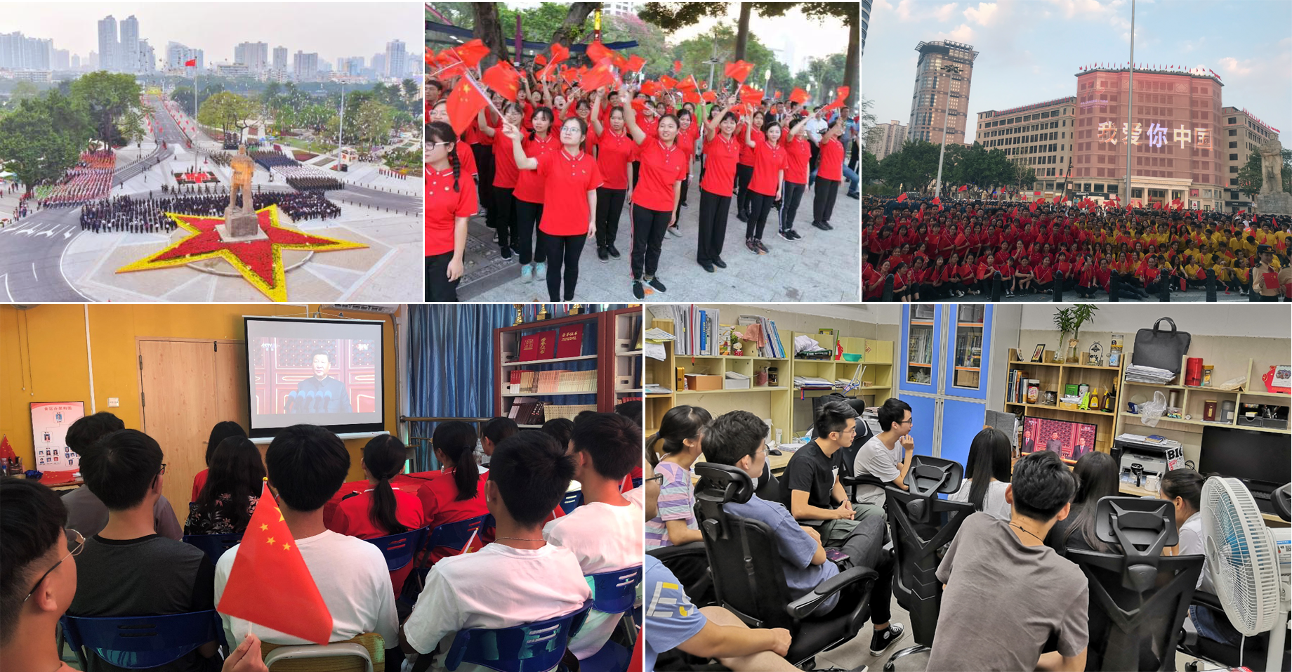 参加了由广东省委、省政府、广州市委市政府在越秀区海珠广场隆重举行的庆祝中华人民共和国成立70周年升旗仪式,亲临现场感受爱国主义教育、歌唱我们伟大的祖国。在活动过程中,同学们充分展示了当代大学生青春向上、积极昂扬的斗志,蓬勃的青春朝气、和激情的爱国主义情怀,受到了市委宣传部的好评。同时,节日留校的同学们纷纷通过网络、视频等媒体,齐聚五室一站、实验室等场所,满怀激情认真收看国庆典礼活动实况直播,学习习近平总书记在庆祝中华人民共和国成立70周年大会上发表的重要讲话。庄严隆重的国庆典礼、威武雄壮的阅兵仪式,让同学们心潮激荡,感慨万千。