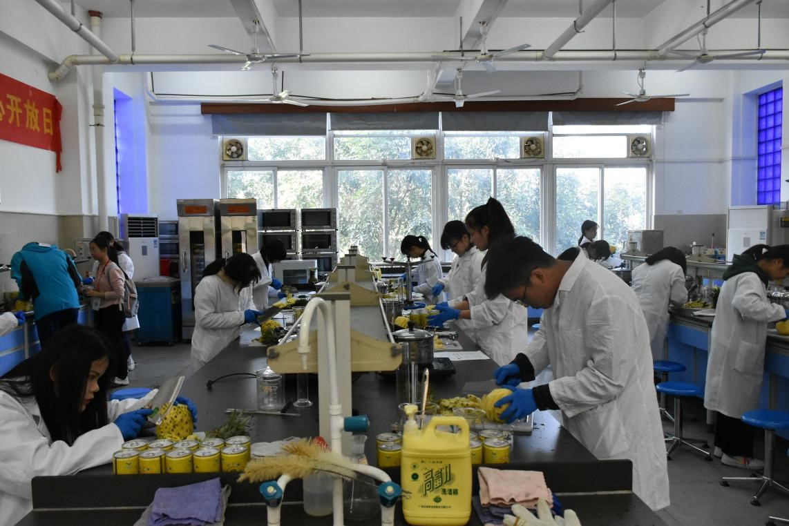 实验展示部分分为化工专业实验、食品专业实验及物理化学实验三大专场,分别在生化楼234、333、411实验室开展,由李树华、郭云萍及郭仕恒老师担任实验指导。同学们跟随着讲义的步骤有条不紊地参加与了DIY个性润肤霜,制作菠萝罐头、热冰和“蓝瓶子”等趣味实验。