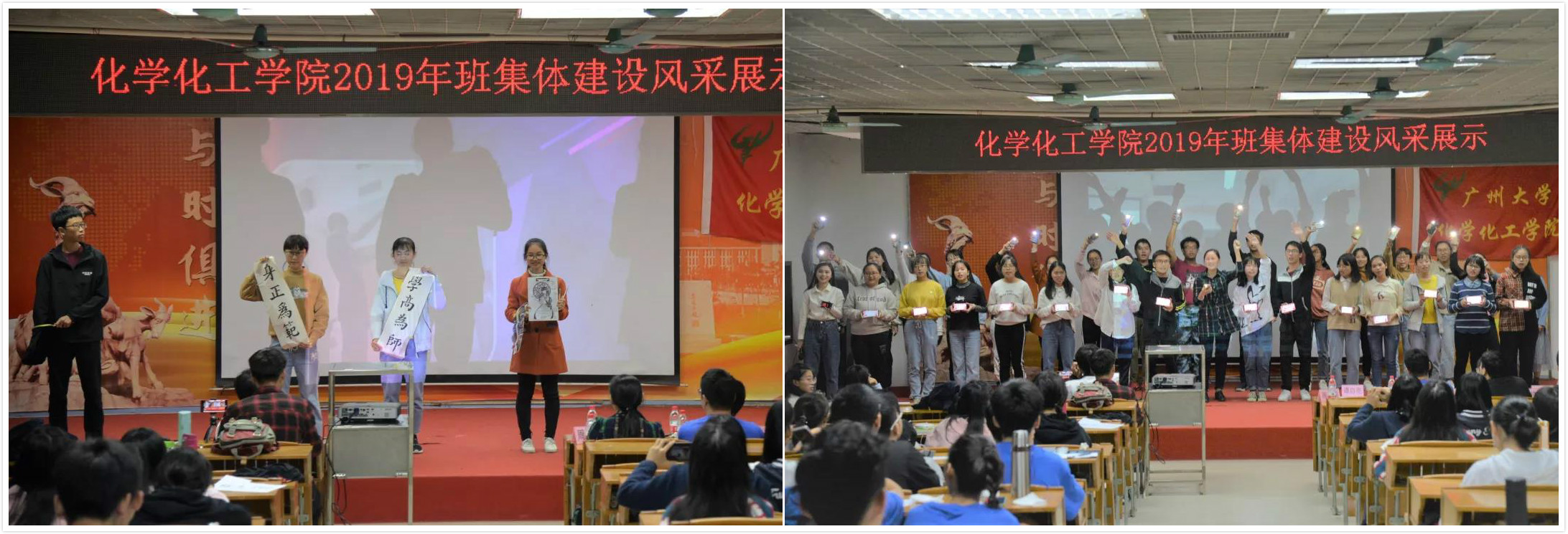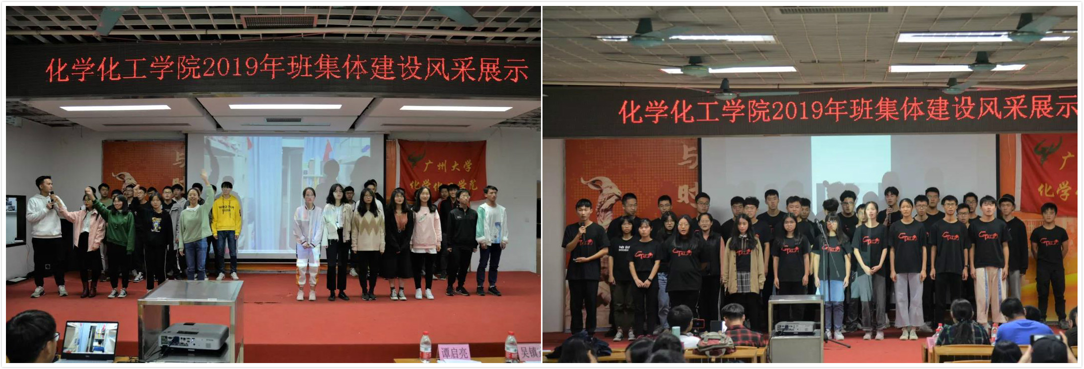 化工194班级代表以讲解PPT的形式展示他们的风采,随后用情景剧“我们的广大故事”和改编版《成都》表演出他们的广大情结。