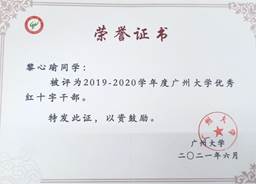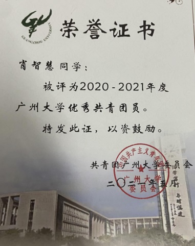 优秀共青团员”,郑杰莹同学获“广州市优秀共青团员(防疫重点领域专项)”。