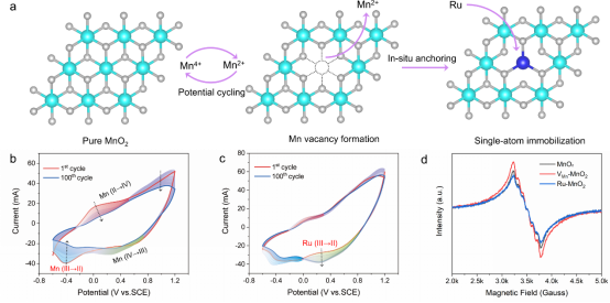 图1. Ru/MnO2的电化学原位合成过程示意图 (Nano Res., 2022, 15, 4980–4985)