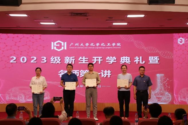 院长韩冬雪教授、党委书记李卓勇老师、党委副书记李红宾老师、化工系主任乔智威教授、化学系主任秦冬冬副教授、化学系副主任孙会靓教授、化学系副主任荣铭聪副教授、化工系副主任刘芝婷老师、综合办主任李飞球老师、教研办主任洪玉玲老师、学工办主任李燕兴老师、各新生班级班主任、学工办全体老师、全体导生、主席团以及23级全体新生出席本次典礼。本次典礼由21级化学专业研究生刘天任和团委副书记袁淑贤主持。