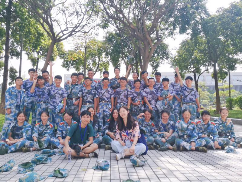 班服底色是蓝色,蓝色像大海,我们要像大海一样心怀包容,学无止境。班服背面是小猪佩奇关于化学实验的四格漫画,寓意着我们在成长的路上要保持一份童心,不要迷失自我。