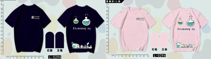 班服的配色为藏青色和粉色,藏青色象征着稳重与深沉,粉色则代表了热情与活力。班服的正面印着我们作为师范生应遵守的准则“学高为师,身正为范”,只有我们学好了知识,将来才能走到教育的一线,踏踏实实地教书育人,只有我们规范了自己的行为,日后我们成为教育工作者时,才能配得上陶行知先生所提出的“以身作则,为人师表”。配在八字准则旁边的试管图标,及班服背面印有的圆底烧瓶、化学实验仪器组图,代表了这门以实验为基础的科学——化学,将其作为班服图案的主体部分,是因为我们不仅是师范生,我们更是理科生,应时刻不忘我们所精攻的专业方向是“化学”。正像班服背面写着的“Chemistry 193”,我们,是最亮眼、最团结的“化师193”!