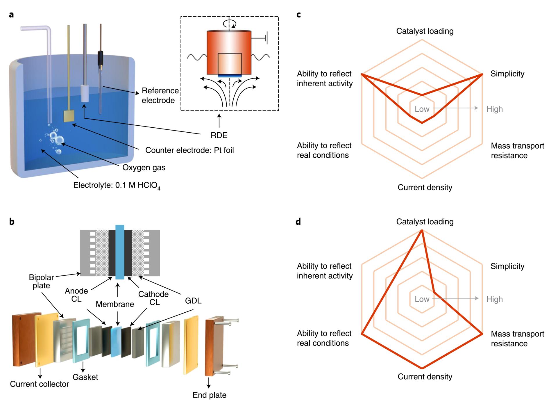 叶思宇教授以共同作者身份,与南方科技大学等单位的研究人员在能源领域国际顶级期刊《自然能源》(Nature Energy)发表了题为“Bridging the gap between highly active oxygen reduction reaction catalysts and effective catalyst layers for proton exchange membrane fuel cells”的综述论文。质子交换膜燃料电池是氢能高效利用,实现碳中和、碳达峰目标的重要技术之一。针对燃料电池阴极催化剂的研究持续了几十年,催化剂的本征活性也得到了长足的提升。然而,绝大多数超高催化性能是基于三电极体系评价得到的,即旋转圆盘电极RDE。一方面,这些RDE测试中得到的超高性能并不完全能够在燃料电池膜电极MEA中得以体现,尤其是在铂基催化剂载量较低时;另一方面,RDE和MEA各自具有局限性,二者差别较大。