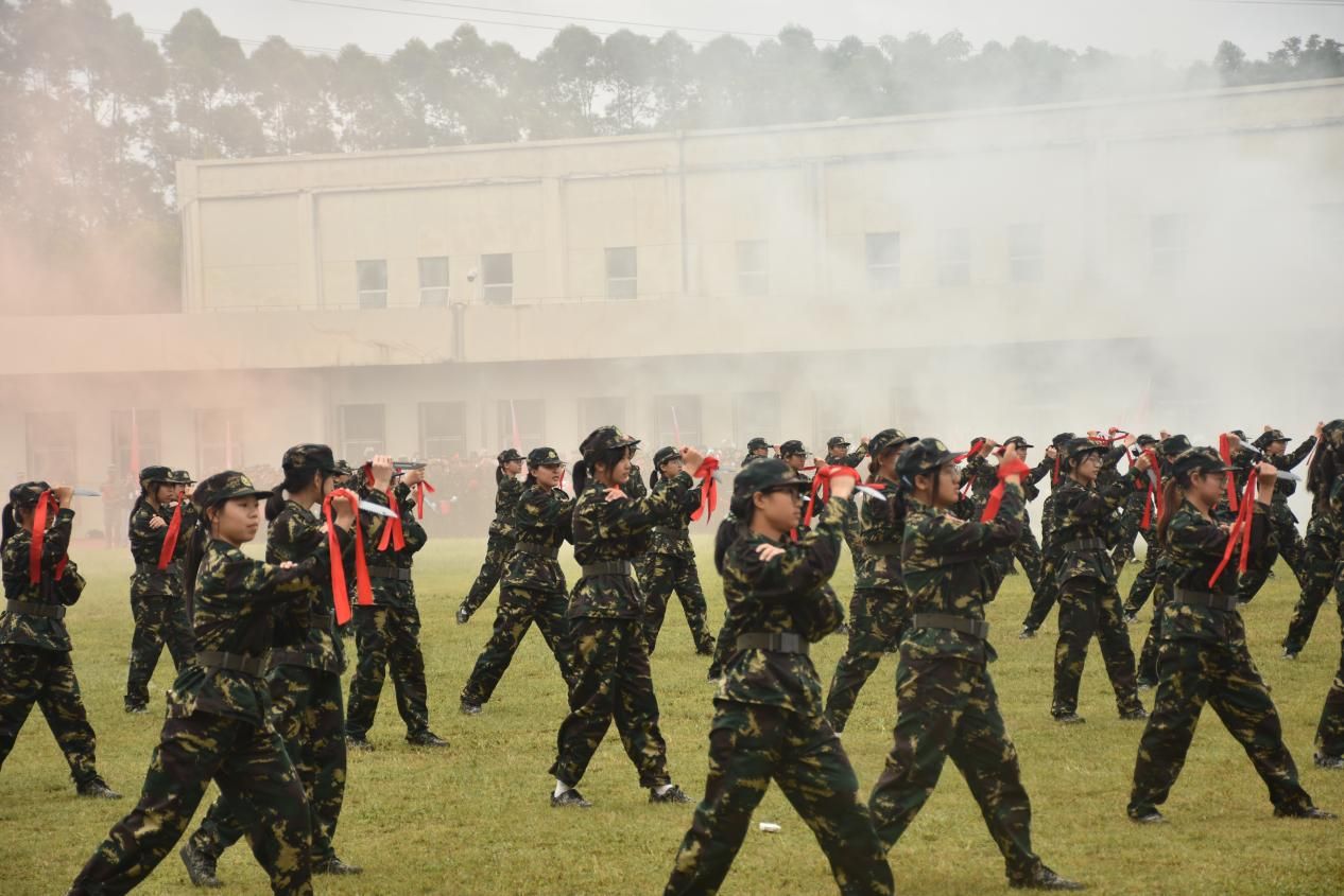 分列式环节中,化院新生组成的方阵迈着整齐有力的步伐,昂首阔步走过检阅台。他们眼神坚定、口号嘹亮,每一个摆臂、每一次踢腿都精准到位,将十余日的训练成果展现得淋漓尽致。女子匕首操表演中,队员们出刀迅猛有力,伴随铿锵嘹亮的口号,利落的动作与饱满的气势相得益彰,生动诠释 “巾帼不让须眉” 的飒爽风采;战术表演环节,参训新生匍匐、翻滚、跃进一气呵成,连贯娴熟的动作尽显训练功底,每一个精彩瞬间都赢得现场雷鸣般的掌声。